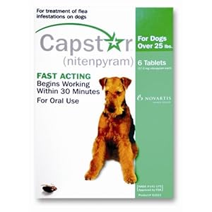 Novartis Capstar Flea Treatment Green Tabs for Dogs and Cats 25 Pounds and Over, 6 Tablets Review